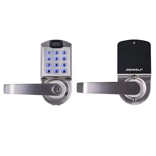Ardwolf A1 Fingerprint Door Lock, Keyless Biometric Keypad Lock, with Reversible Lever and Automatic Locking, No Drills Needed – Satin Nickel